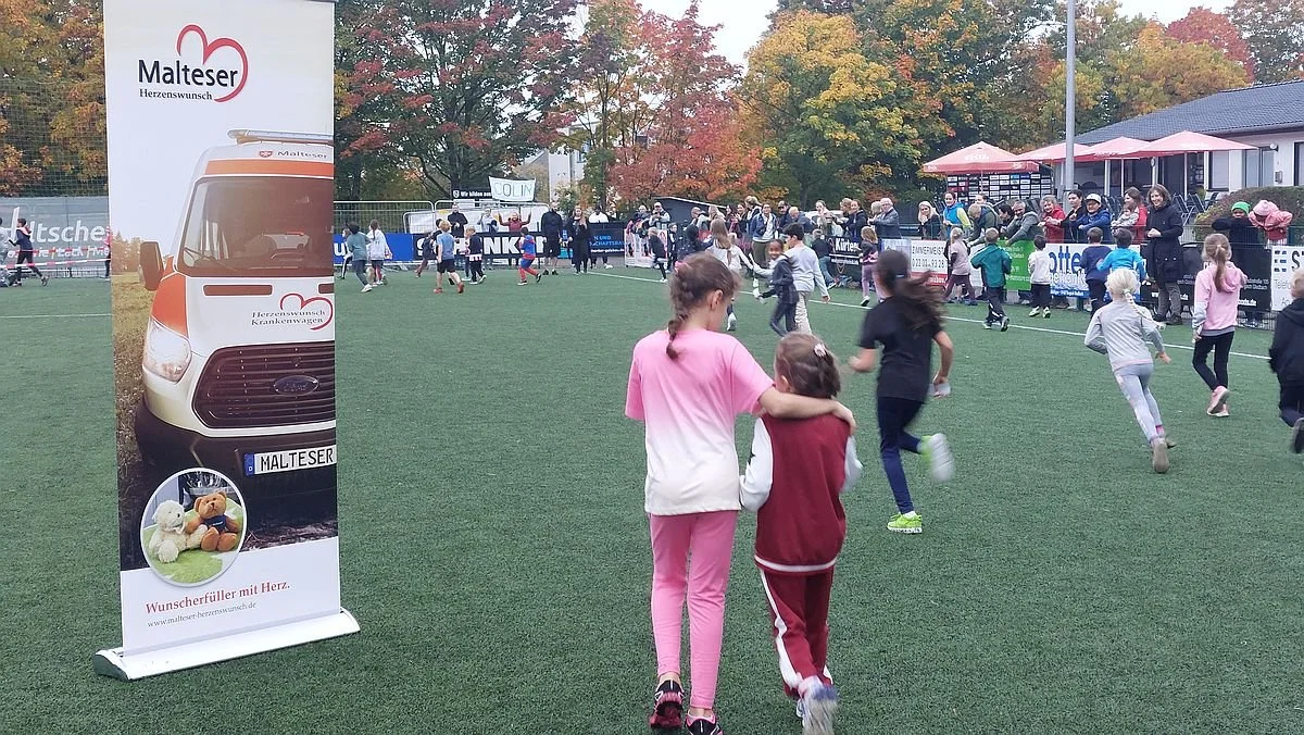 Mit beeindruckender Energie haben die knapp 300 Schülerinnen und Schüler der Gemeinschaftsgrundschule Heidkamp in Bergisch Gladbach bei ihrem Sponsorenlauf 16.416,70 Euro erlaufen. Das Kinderparlament der Schule entschied sich im Vorfeld aus zehn Vorschlägen für das soziale Projekt „Malteser Herzenswunsch“, durch das schwerstkranken Kindern und ihren Familien besondere Momente ermöglicht werden. Bei der Scheckübergabe war die Freude auf beiden Seiten riesig.